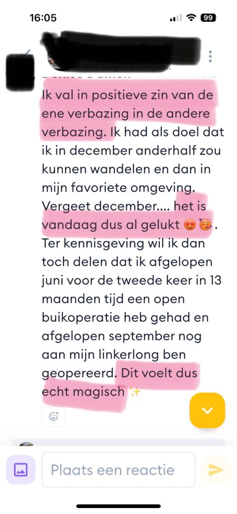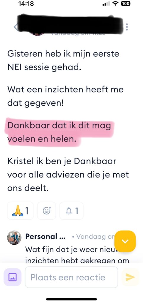 Kristel bedankt voor al je positieve verhalen. Ik put hier heel veel kracht uit. Ben al een heel eind op weg en dit steunt mij enorm. Dank je 🙏🏻