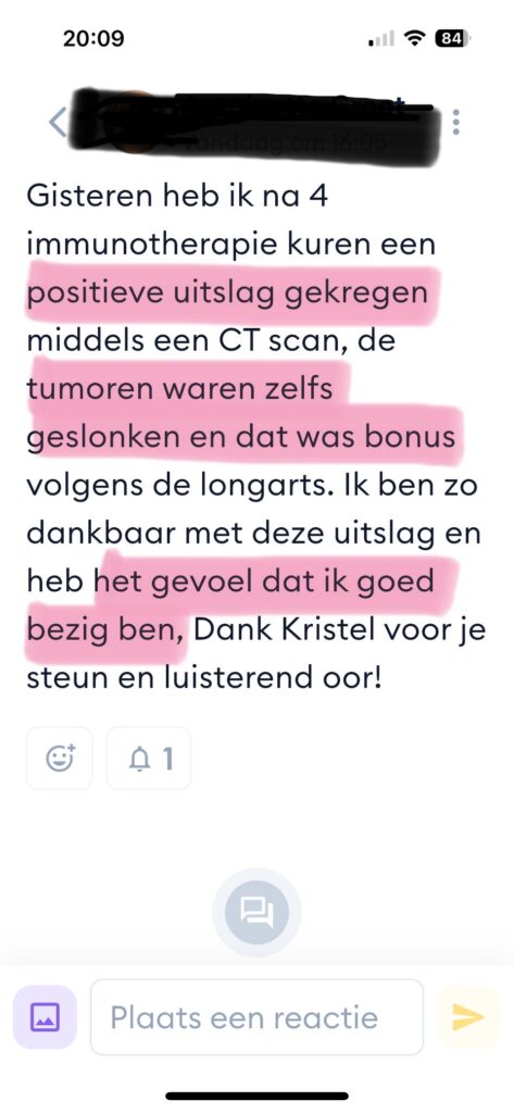 Je hebt een goede keuze gemaakt om door te gaan als coach om mensen met kanker te begeleiden. Ik ben heel blij met jou als coach! ❤️🙏
